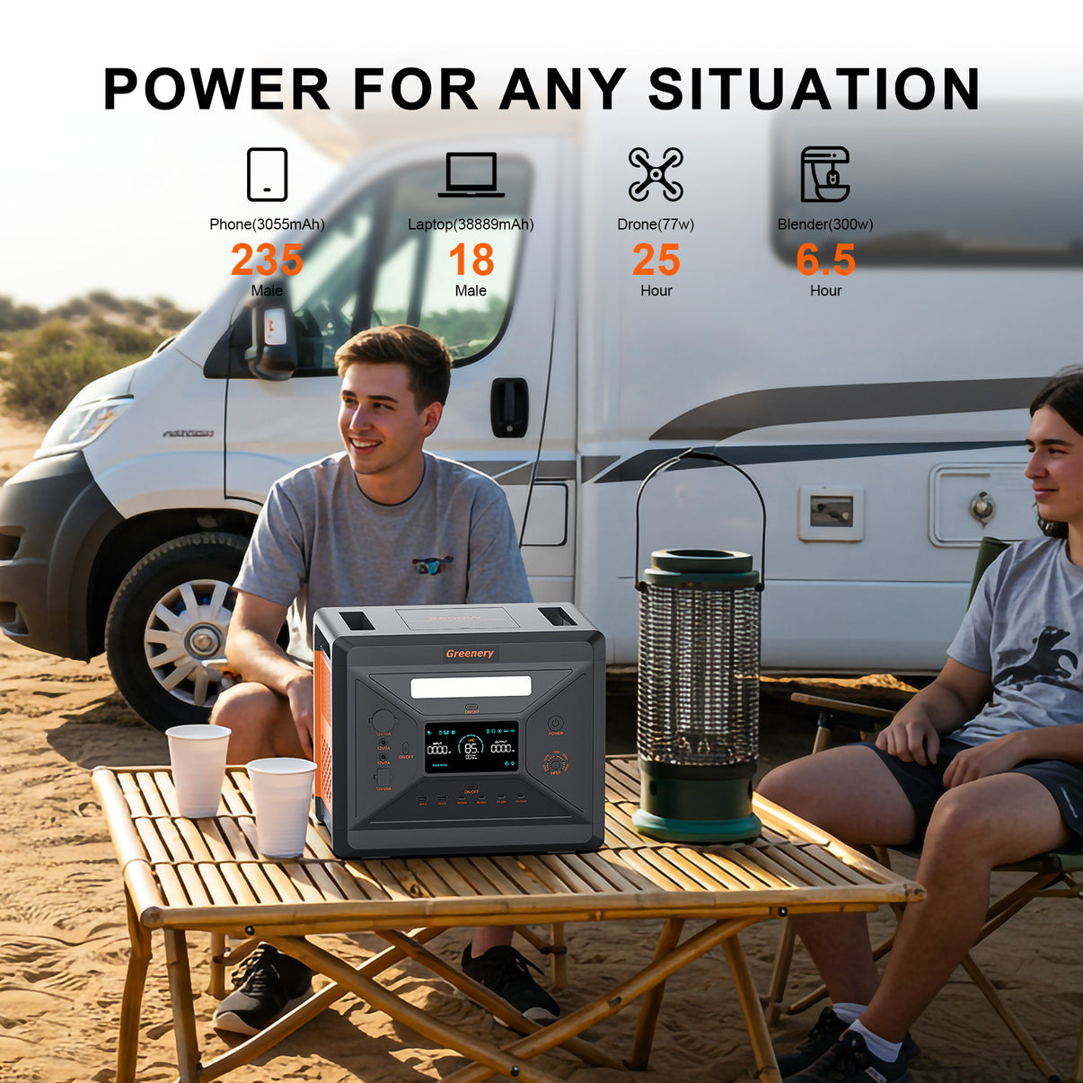【2304Wh MEGA CAPACITY & 2500W HIGH OUTPUT】 Power 95% of home/camping devices (microwaves, fridges, power tools) with 2304Wh LiFePO4 battery rated for 3,500+ cycles. 23% lighter than traditional power station at 22.4kg - ideal for emergency backup, RVs, and multi-day outdoor adventures.