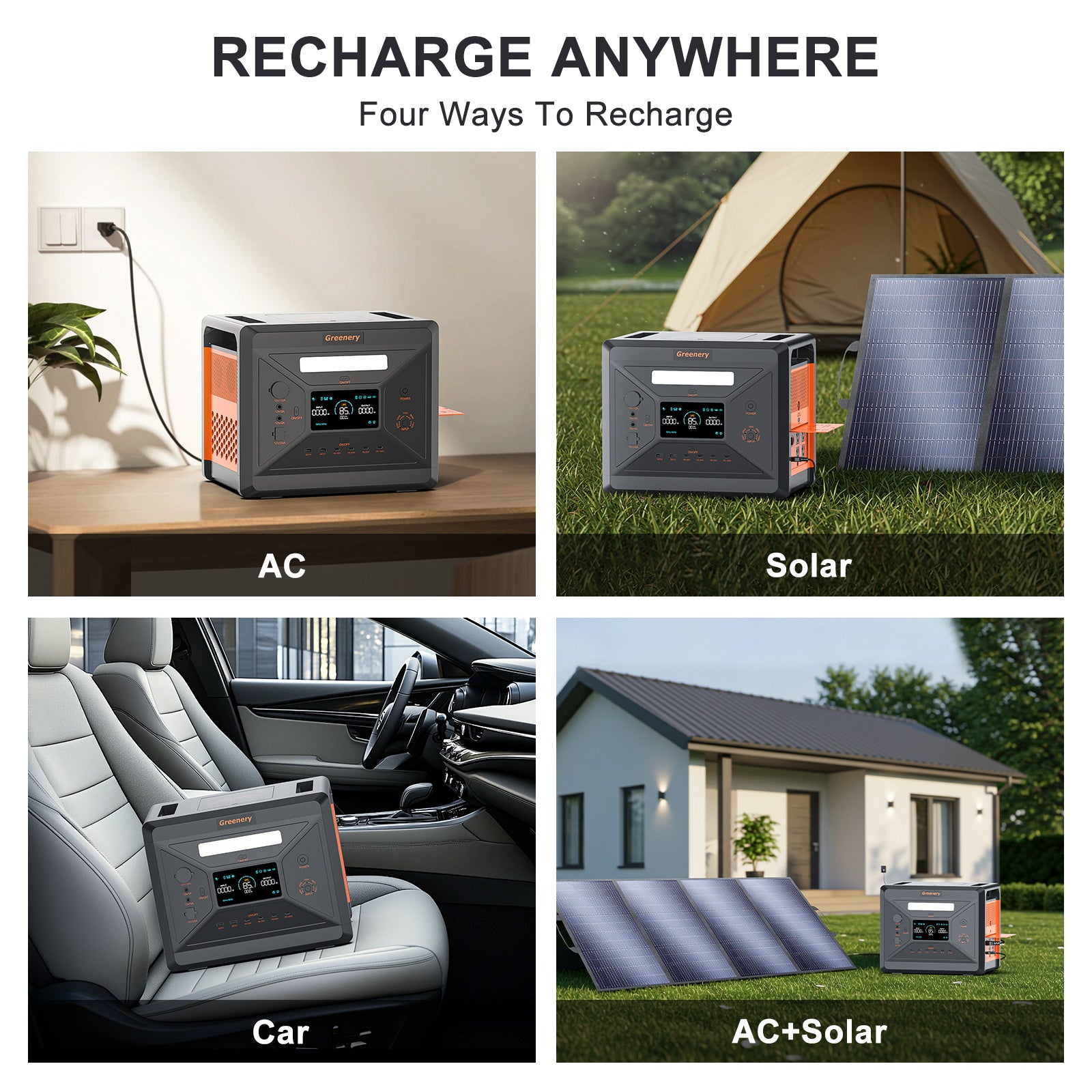 【1.5Hr ULTRA-FAST DUAL CHARGE & SOLAR-READY】 Recharge 0-100% in 1.5hrs via AC+solar dual input (1100W max), 2x faster than similar solar generators. Compatible with Greenery 200W panel for off-grid energy. Adjustable input (300W-1100W) ensures safe charging from cars/generators.